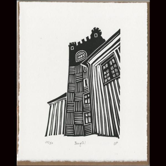 Printed on my antique letterpress, this watchful castle is an original linocut on Somerset printmaking paper. 5 available.