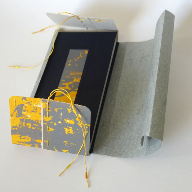 Flagbook in style of Hedi Kyle made of original screenprints, grey elephant skin paper and black linen. Comes with handstitched case made of original screenprints and grey elephant skin paper. Everything is wrapped in a light card sleeve for protection. Unique piece - only 1 available.