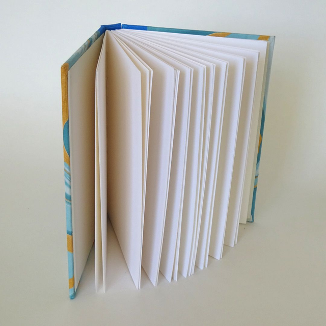 Criss-cross binding with marbled paper covers and cloth-covered spine.
